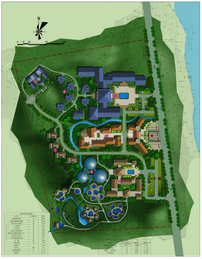 | 度假区规划总用地 | M2 | 66720 | 100 |