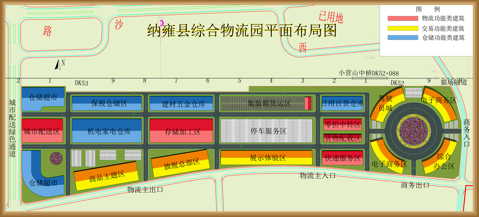 项目用地面积600亩,建设内容主要包括七大功能区:物流交易区、加工配送区、交易展示区、仓储功能区、办公及电子商务区、物流商务区、保税区、大门及门卫室、配电室等。